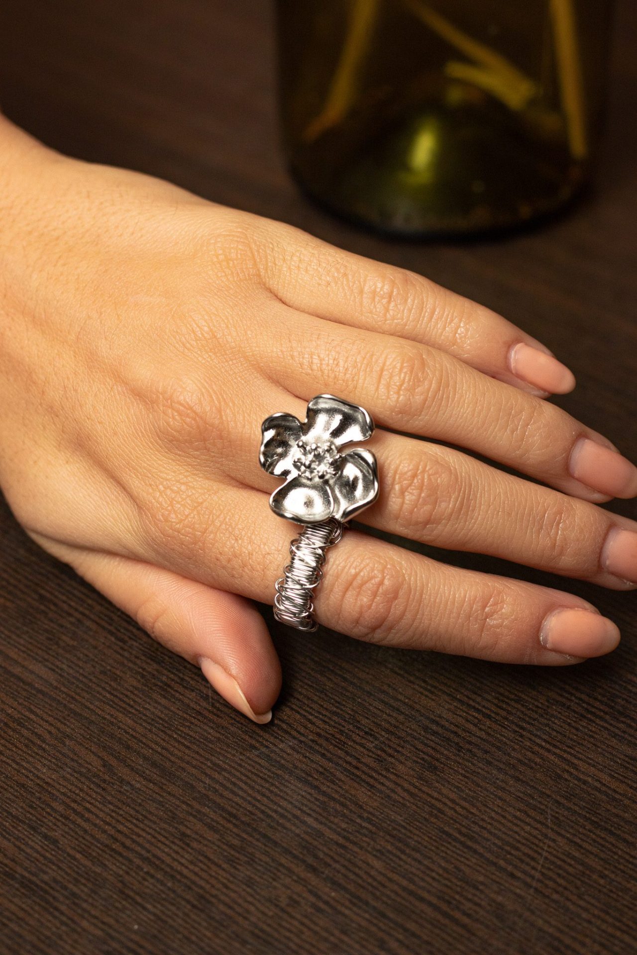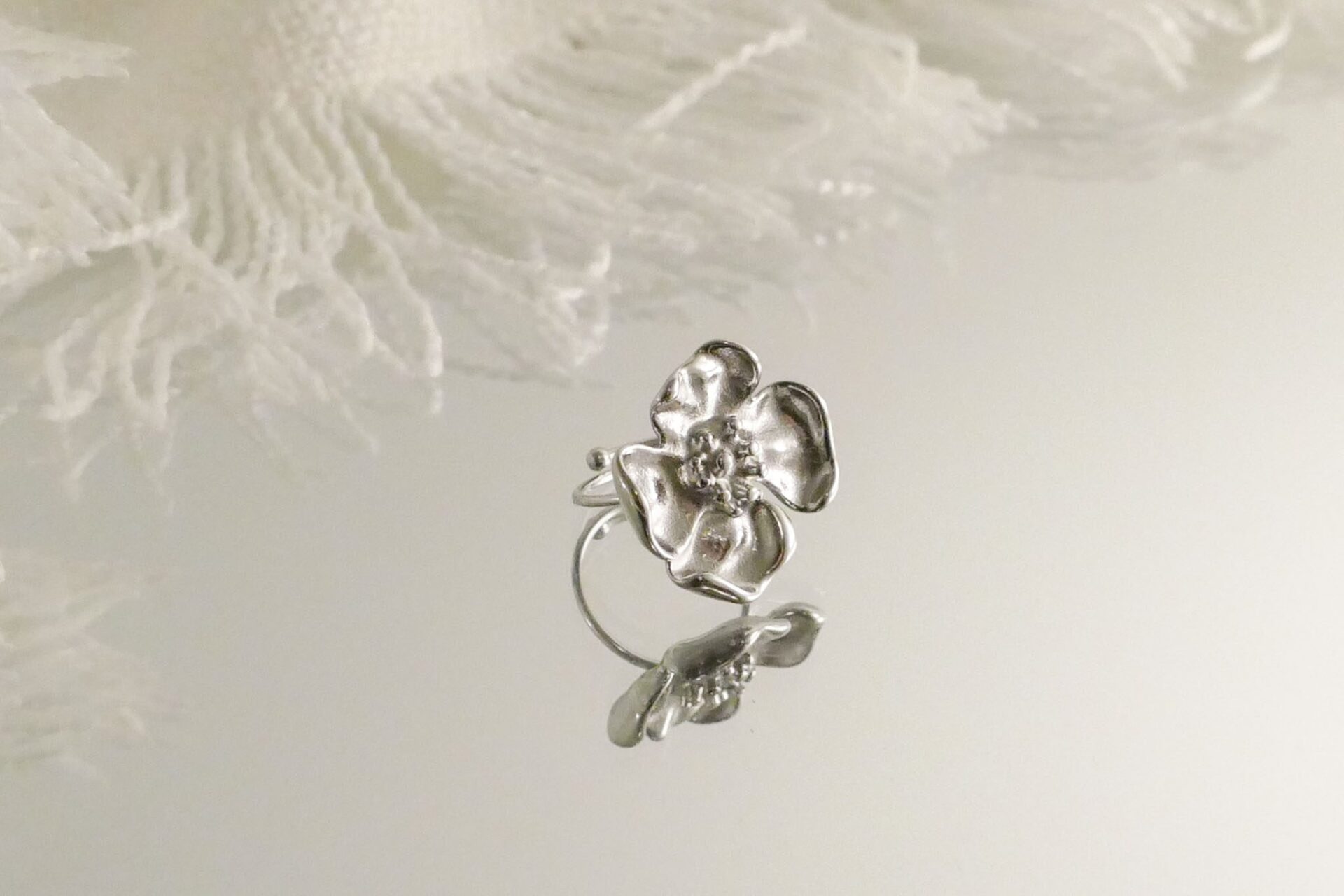 Bague magnifique, avec sa fleur travaillée avec délicatesse et montée sur un anneau fin.